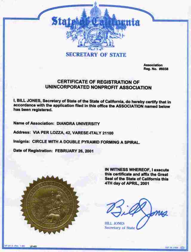 In 1981, Ambrosini established the Accademia Superiore di Studi di Scienze Naturali e Psicobiofisiche Prof. Ambrosini – Diandra University (Deed 7-2-81 N°17942/3382) which was registered as a nonprofit association under Italian law. There were further registrations in Brazil, Spain and California, USA.