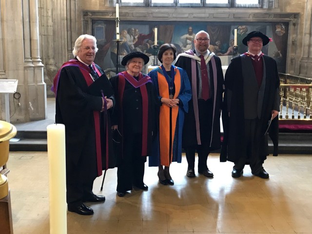 With other Honorary Fellows at the ceremony at All Hallows-by-the-Tower, London.