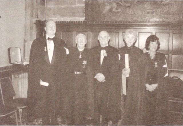 The investiture at Coventry Guildhall – I am first on the left with two Dames, the Grand Prior, and the Chaplain, the Revd. Douglas Pharaoh
