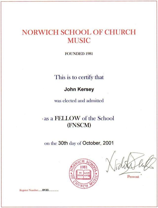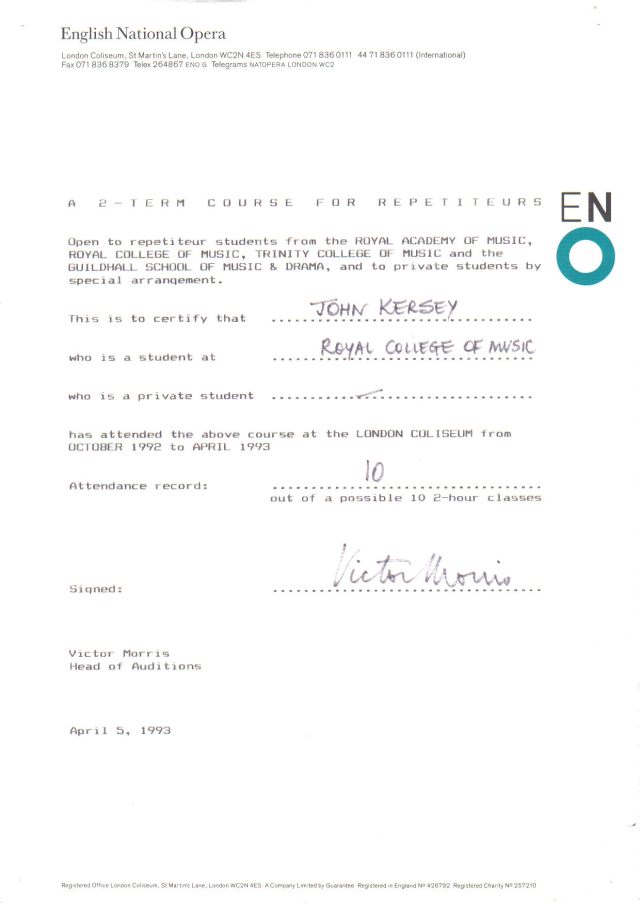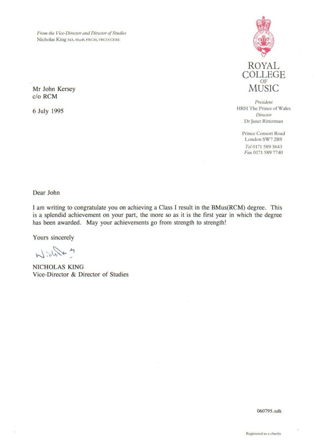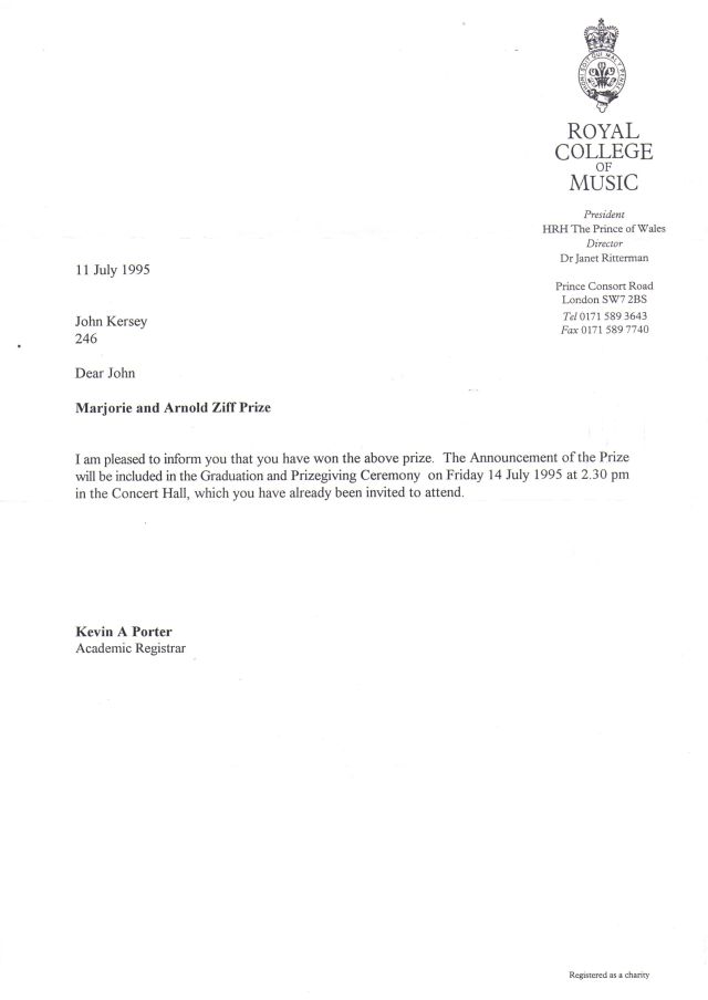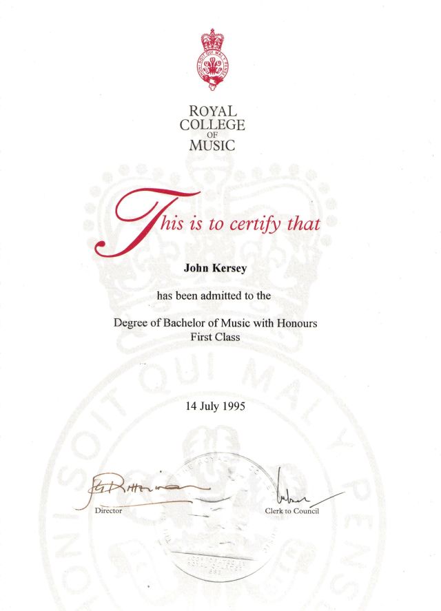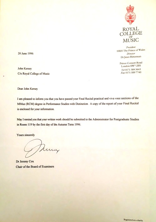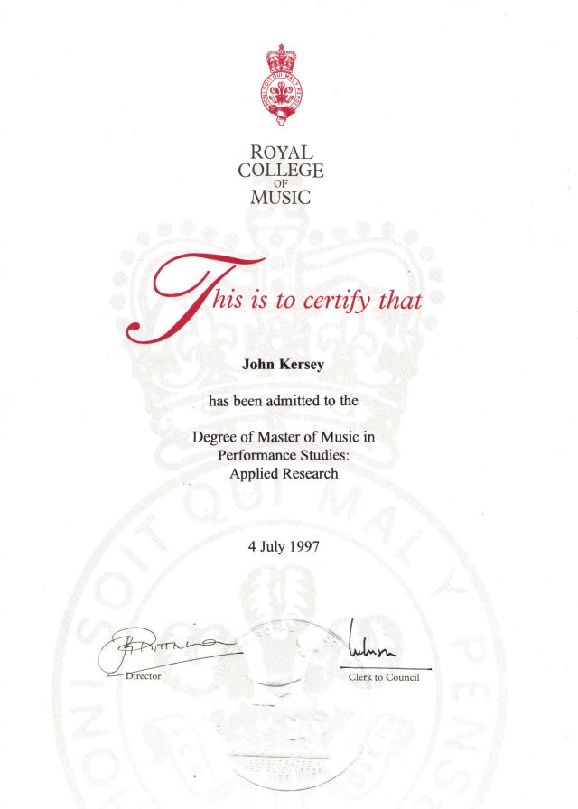 I was notified that I had been successful in the Master of Music degree that autumn, and would await formal graduation the following summer.