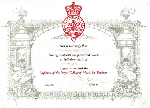 Today, the Curwen College of Music  offers external diploma examinations in practical and theoretical music. In 2003, I was a successful candidate for the Fellowship examination in pianoforte. I was also appointed an Examiner to the College in piano and for dissertations.