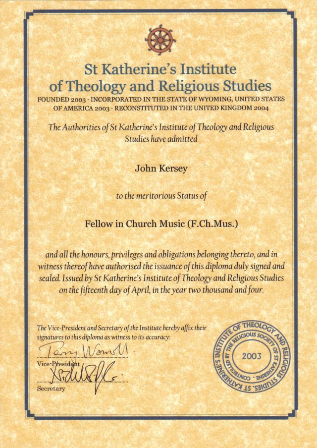 With respect to the MCL organization itself, I consequently undertook a major revision that relaunched it in September 2006 as a specialist rather than generalist college devoted to theology and church music called St Simon’s College, London. This preserved much of the assessment methodology and educational principles of MCL, but in a more restricted context that was in keeping with my ministerial work of the time. A number of short courses in Liberal Christian Theology and Ministry were added to the programmes being offered. St. Simon’s College served as the seminary for The Independent Old Catholic Church of the Utrecht Succession and The Liberal Rite which were the denominations within which my ministry was at that time carried out.