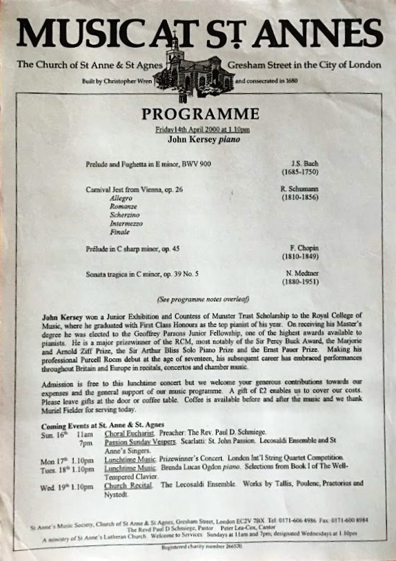 I was at John Kersey’s piano recital on Saturday May 16th 2015 in Chingford parish church, London E4. The size of the audience was disappointing; perhaps 50 or maybe 60. But I wasn’t disappointed by the experience.