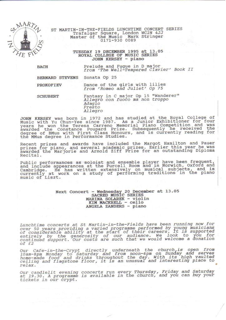 I cannot praise John Kersey’s performance highly enough. And I recommend that all of you who enjoy 19th century music should look out for his next recital, and go to it.